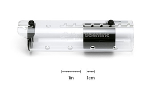 A clear acrylic holder suitable for holding mice weighing up to 25g, while performing non-invasive tail blood pressure measurements. Includes an adjustable nose cone that allows for unrestricted breathing. Inside diameter of 1.00’’ (25.4 mm) and length of 3.50’’ (88.0 mm).