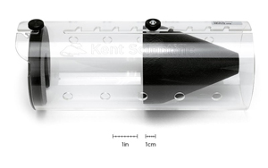 A clear acrylic holder suitable for holding mice weighing 25 and 50g, while performing non-invasive tail blood pressure measurements. Includes an adjustable nose cone that allows for unrestricted breathing. Inside diameter of 1.25’’ (31.75 mm) and length of 4.25’’ (107.95 mm).