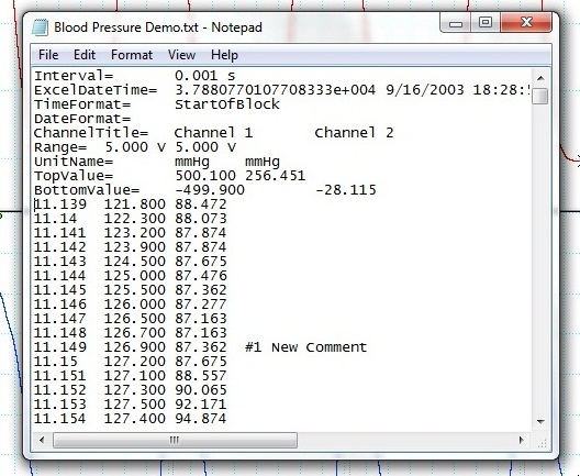 As shown in the image below, when this box is checked the full comment text is added to the text file as a new column at the row which corresponds to the sample time where the comment was placed in the original LabChart data file.