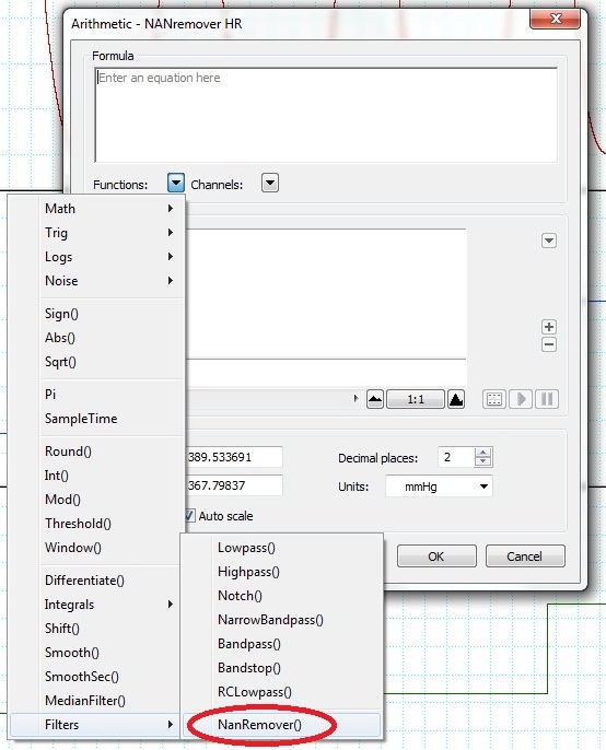 Select the Nanremover function from the Arithmetic Setting Window Functions Menu.