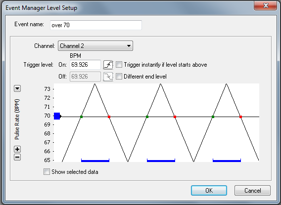 For full details of the Event Manager options, please see the LabChart help - Help Menu>LabChart Help