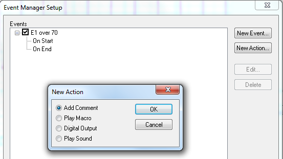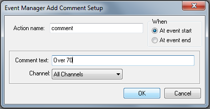Click OK to complete and then OK again to close the Event Manager dialog. Now the comment will be automated when your recording signal goes above the given threshold.