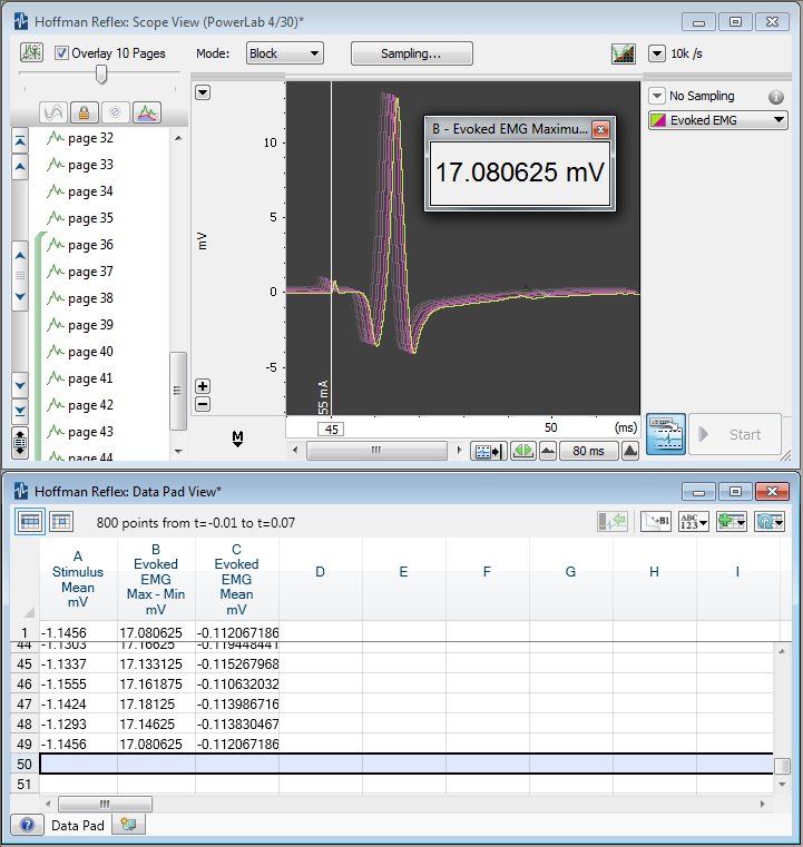 LabChart 7 for Windows and LabChart 8 for Mac have an integrated Scope View option for overlaying and averaging individual waveforms. This is ideal for looking at triggered events or stimuli as the Scope view can be set-up based on three options;