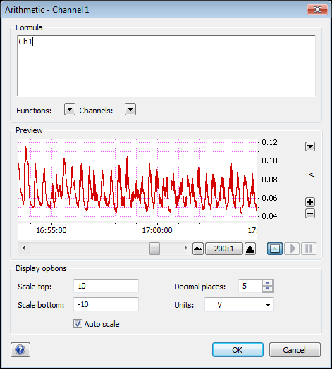 Choose the Arithmetic option from the channel drop down menu. Here you can apply just the channel number to the formula bar. Again choose the correct units and change the number of decimal places.