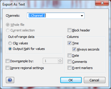 Neuroexplorer is also able to read .txt files, which LabChart is capable of generating via the 'Export' option, found under the main 'File' menu. This method requires that you uncheck the 'Block Header' option, as NeuroExplorer cannot read the column headings: