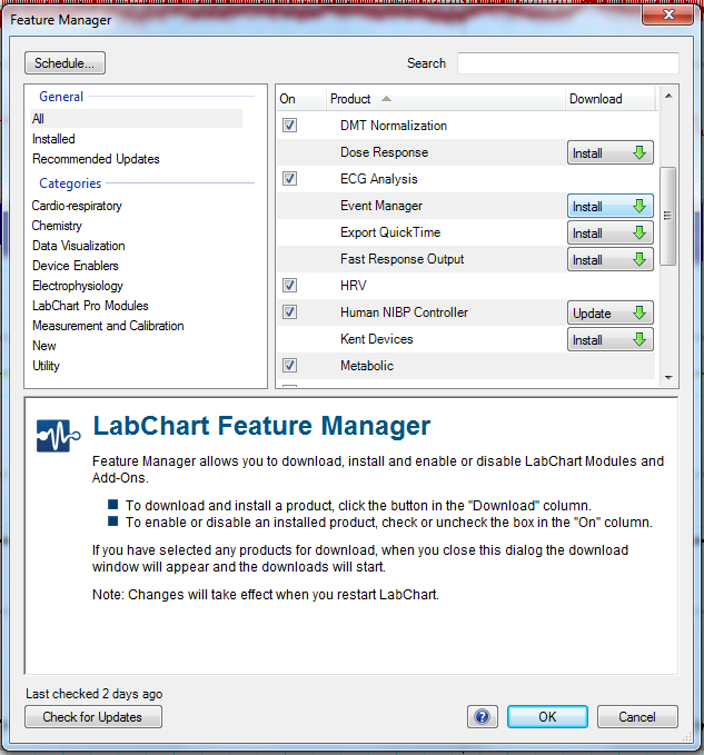 In LabChart 7 or later, the feature manager is a great way to check which ADInstruments add-ons are available and installed on your copy of LabChart.