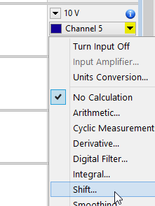 If you are sampling from multiple different devices into different channels in LabChart , you may find that the data coming from one device is not synchronized with data from other devices. You can time-shift a channel in LabChart to synchronize the channels by using the 'Shift...' feature located in the Channel Calculations pop-up menu.