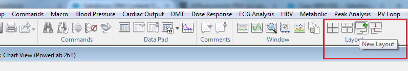 To automate this you can create custom layouts to switch between different Chart View version with the desired channels maximized and minimized. Up to six different layouts can be saved in a given instance of LabChart. To create a new Layout, arrange the channels as you wish to have them and click on 'new layout' icon in the tool bar:
