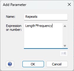 Here, Width (for pulse width), Frequency, and Repeats are the custom parameters you would have added in the Stimulator's Customize... window.