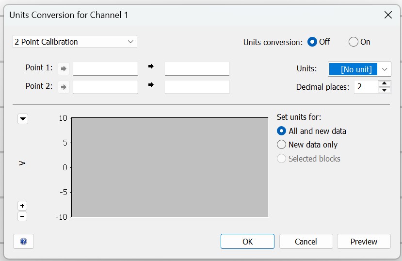 You may enter these values directly into the "Units Conversion" dialog box found under Channel drop-down menu and change to the relevant Units (See picture):