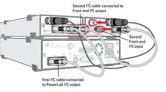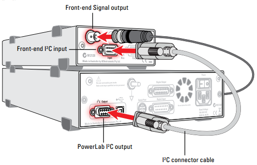 3. Connect the I2C output of the PowerLab to the I2C input of the front end using the I2C cable provided.