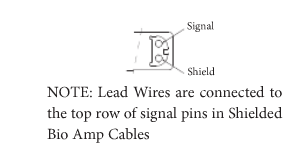 Unshielded lead wires and electrodes such as the MLA0315 and the MLA4103 need to be connected to the signal pins. With the input sticker on the top of the cable, the signal pins are the top row and the unshielded leadwires should be connected here.
