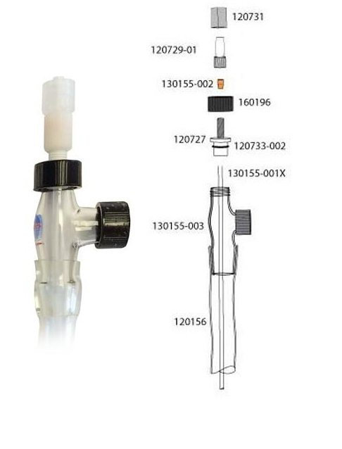 5. Remove the Glass component 130155-003 and discard if broken. The glass and external tubing can be separated by placing in warm water if required.