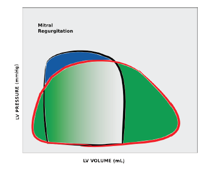 Left ventricle pressure volume loops may appear distorted as depicted in the following example: