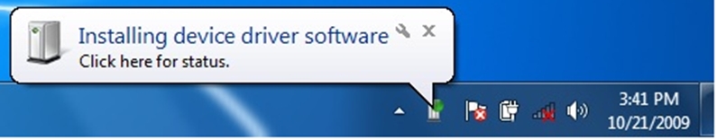 To re-install the PowerLab driver, simply power on and connect the PowerLab to your computer (with an internet connection). You should see an icon in the status bar indicating that the device driver is being installed.