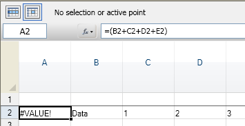 #VALUE!: This error is caused if you explicitly reference cells that contain different types of data. In the below example, some of the referenced cells contain numerical data, some contain text (cell B2) - since the cells are specifically referenced, this generates the #VALUE! error. To resolve this, either: