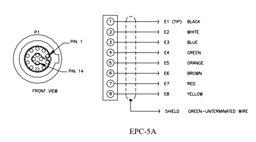 The connections to the eight electrodes are color coded. Please refer to the schematic diagram below and the Eight Electrode Interface Cable manual for additional details regarding the pinout of the EPC-5A cable.