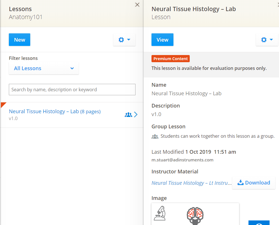 Premium Lessons are annotated with a red mark on your Lesson list and have a banner marking them as premium on the Lesson card. You can view these lessons but cannot edit or publish them.