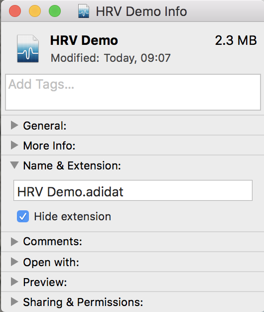 Please note: although the file looks like an *.adicht file after conversion it hasn't preserved any settings: channel calculations like cyclic measurement or digital filters will not be preserved. If the original file had units conversion say to mmHg applied the converted file will display the mmHg values, but you can't undo the units conversion to see the original mV data. Also channel names and comments are part of the raw data format and will be transferred.