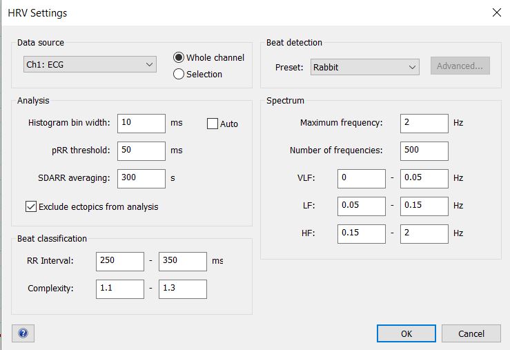 Note: The default averaging period is 5 minutes. This can be altered in the HRV Settings dialogue “SDARR” averaging text box (see image below).