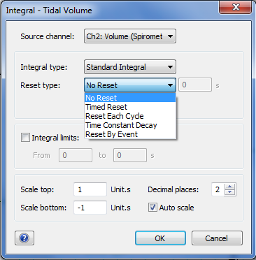 where k (>1.0) is a volume correction ratio. This method, however, over-corrects shallow panting breathing, in which most of the air breathed is dead-space air. LabChart's Spirometry Extension accounts separately for dead-space air while integrating, and uses a more elaborate correction: